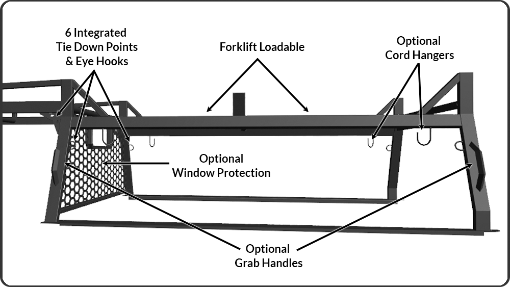 No matter what kind of contractor you are, sometimes you need a full-size rack to safely haul your materials, supplies, and tools. And not just any rack, but an extremely rugged rack, customized to 'work' for your business and protect your truck while doing it. You won't find a better custom built, full-size contractor rack designed for your Chevy, GMC, Dodge, RAM, Ford, or Toyota truck anywhere else.